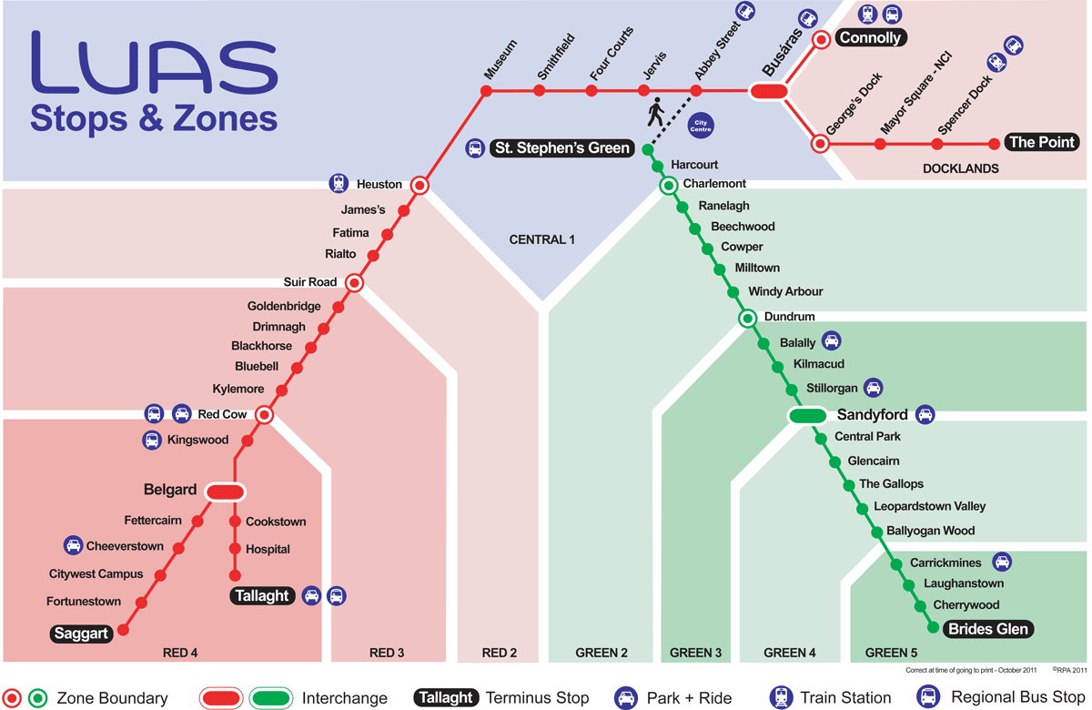 Alle haltes van de rode lijn. Kijk voor de volledige routemap op de de website van LUAS.